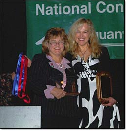 Marion accepting USDF Horse of the Year awards at convention 2008.